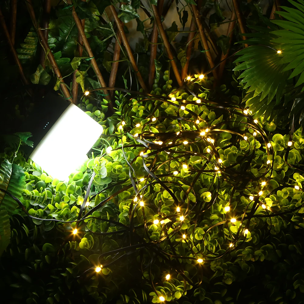 5. Práctico diseño para colgar: Equipada con un práctico asa, esta guirnalda de luces solares para camping ofrece opciones fáciles de colgar. Puedes colgarla cómodamente dentro de tu tienda de campaña, en la rama de un árbol o donde necesites iluminación, lo que te permite tener las manos libres para otras tareas.